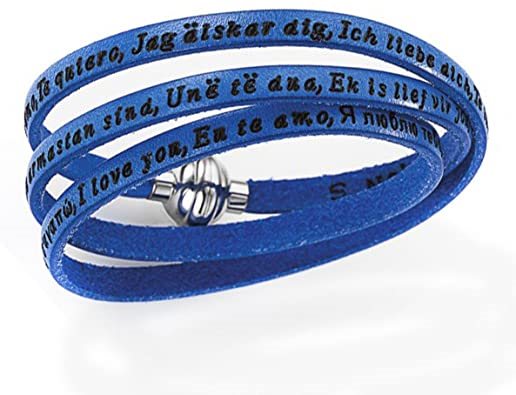 Bracciale in vera pelle naturale con chiusura in acciaio a calamita, con inciso "Ti Amo" in tutte le lingue del Mondo.