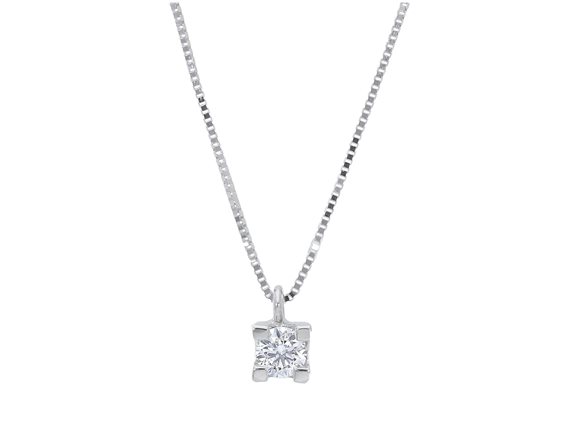 Collana oro bianco pendente diamante a griffe ct.0.12 G SI