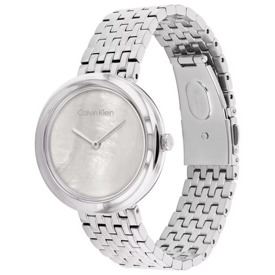 Orologio da donna Calvin Klein della collezione Sculptural. Il movimento dell'orologio è al quarzo. La cassa è realizzata in acciaio, diametro 34 mm. Il bracciale è realizzato in acciaio. Il quadrante è di colore madreperla. La resistenza all'acqua è di 3 atm / 30 metri. Referenza: 25200320 Articolo spedito con garanzia ed astuccio originale Calvin Klein