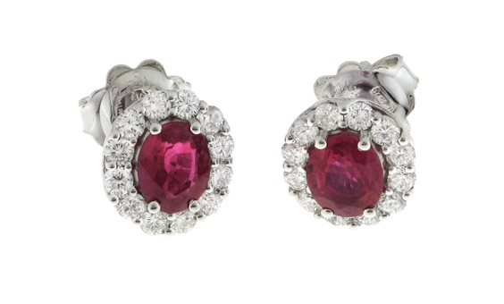 Orecchini in oro bianco con rubini (1.54cat) e diamanti (0.6cat).