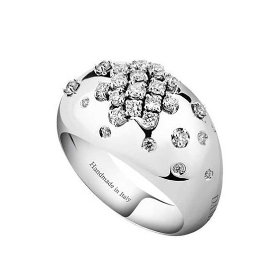 La suggestiva collezione di gioielli Paradise di Damiani si ispira alla bellezza dei cieli stellati, degli astri, delle stelle e dei pianeti, facendoli rivivere in un affascinante accostamento d’oro bianco, diamanti e pietre preziose. Il risultato sono gioielli unici e inimitabili, che evocano la magia, le rarefatte atmosfere e lo sfavillio dei cieli notturni di mezza estate.Composta da esclusivi anelli, bracciali, collane e orecchini, nelle versioni solo con diamanti bianchi oppure con diamanti e zaffiri, questa collezione di gioielli è caratterizzata da un design tondeggiante e dalla suggestiva lavorazione in bouquet dei diamanti e degli zaffiri, per un effetto assolutamente sorprendente e spumeggiante. La sapiente lavorazione artigianale, caratteristica fondamentale di Casa Damiani, vede in queste creazioni orafe una delle sue massime espressione, rendendo questa collezione di gioielli unica e inimitabile nello stile e nella maestria della sua realizzazione. Anello in oro bianco con diamanti taglio brillante ct 0,51