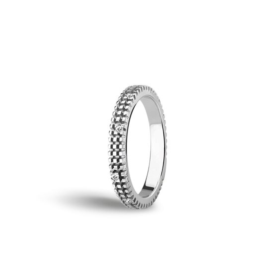 Una collezione di gioielli che realizza il sogno metropolitano Nella collezione di gioielli Metropolitan Dream il design, marchio inconfondibile di casa Damiani, trova la sua massima espressione: le linee moderne incorniciate da preziosi materiali come oro giallo, rosa e le nuove versioni black e brown colpiscono al primo sguardo e donano un’emozione indimenticabile a tutte le donne che amano apparire con modernità e ricercatezza. Moderni, dal design accattivante, i gioielli Metropolitan sono la massima espressione di un gusto contemporaneo semplice e ricercato. L’estetica pulita e le linee minimali esaltano una texture singolare che distingue la particolare lavorazione dell’oro su cui luminosi si stagliano i diamanti. Anello in oro bianco con diamanti round white ct 0,06