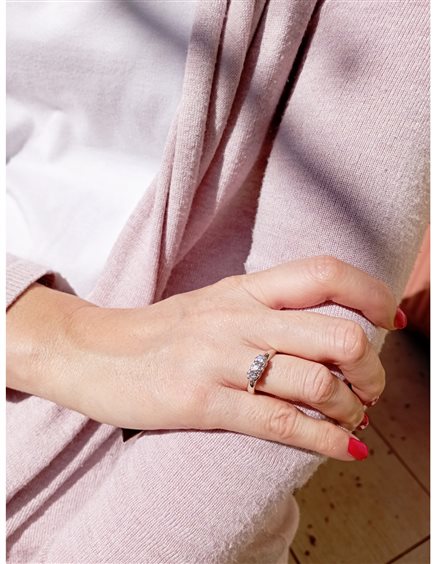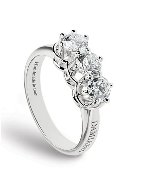 Anello trilogy della collezione Minou in oro bianco con diamanti con caratura totale 0,45, colore GH e purezza VVS-VS.