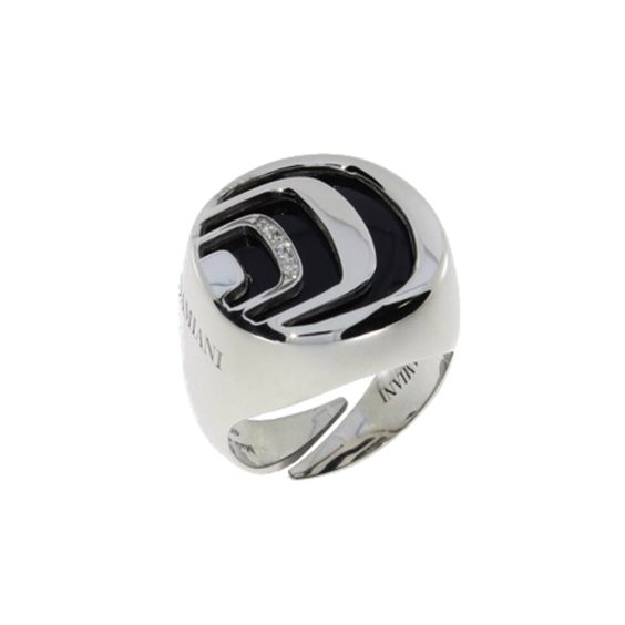 Damianissima 925 rappresenta la prima collezione di gioielli in argento firmata Damiani, caratterizzata dall'eleganza della Maison Damiani ma anche dalle tendenze più attuali nella realizzazione di bijoux. Realizzati in due eleganti versioni, i gioielli Damiani Damianissima 925 sono tutti realizzati in argento 925. Nella versione chiara, gli artigiani Damiani hanno usato la delicatezza della madreperla mentre nella versione scura, l'eleganza dell'onice dona ai gioielli una personalità decisa e carattere moderno e attuale. Anello in argento con diamanti e onice. Misura regolabile