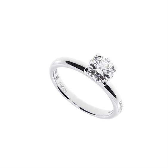 Anello Solitario Damiani Luce in oro bianco 18 kt e diamante 0.203 ct. L’eleganza e il fascino della luce racchiusa in un gioiello. Collier e orecchini punto luce, tre pietre, verette e bracciali tennis sono i gioielli proposti da Damiani nella collezione Luce che celebra la lucentezza del diamante. Con la sua montatura a quattro griffe, la linea Luce rappresenta un classico intramontabile della gioielleria.