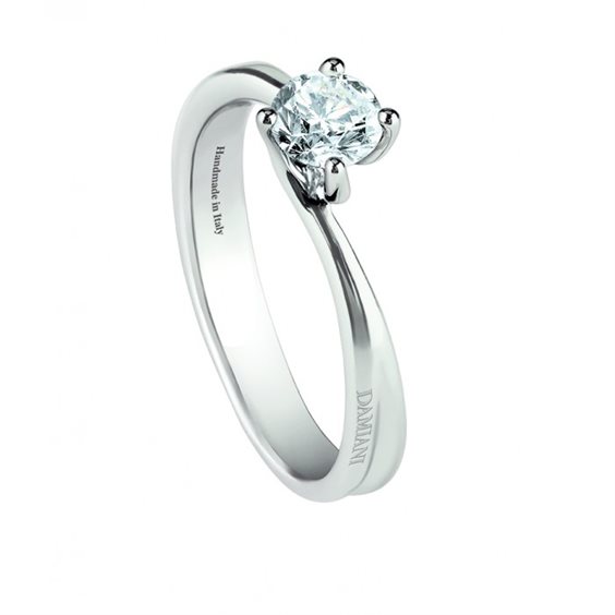 Romantici e sofisticati, gli anelli di fidanzamento Damiani, sono un dono autentico che ogni giorno parla d'amore a chi li indossa Il solitario Beauty con il suo doppio gambo ritorto affascina e seduce. Torsione elegante e raffinata che si conclude sulle su 4 griffe per dare al diamante la massima luminosità mantenendo uno stile armonioso. Solitario Damiani Beauty in oro bianco 18 kt , diamante 0.51ct