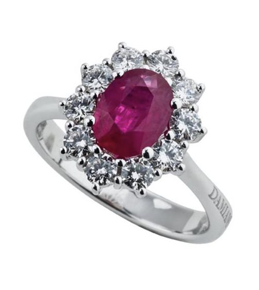 Anello della collezione Gemma d in oro bianco con rubino con caratura 1,02 e diamanti con caratura 0,42 di colore GH.