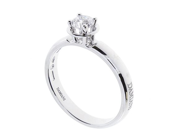 Anello solitario della collezione Minou 4 griffe in oro bianco e diamante a taglio rotondo con una caratura di 0,53. Ente certificato: GIA.