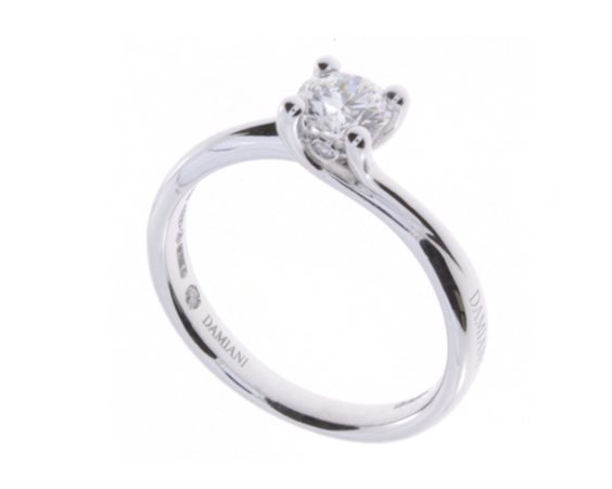 Anello solitario della collezione Amami in oro bianco e diamante a taglio rotondo con una caratura centrale con caratura 0,51 di colore G e purezza VS2 e diamante nel gambo interno con caratura 0,03 di colore GH. Ente certificato: GIA .