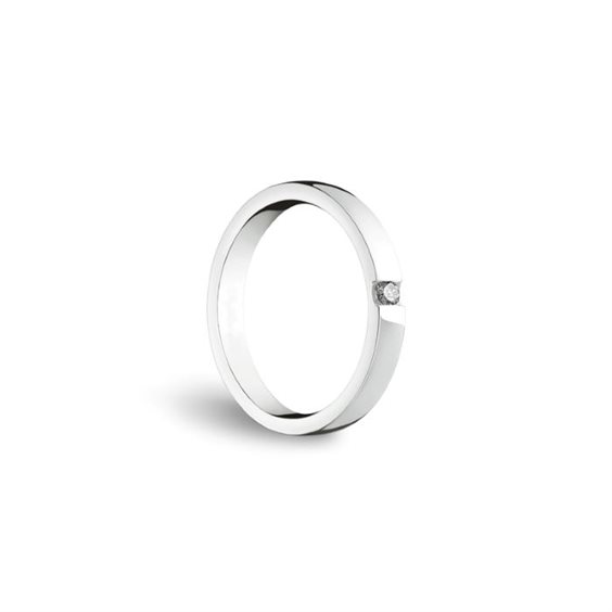 Fede nuziale della collezione Veramore in oro bianco con spessore 2,70mm con diamante con caratura 0.05ct di colore GH.