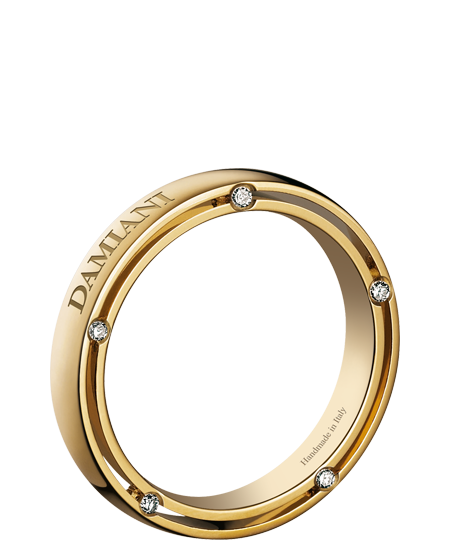 Un segno perfetto che abbraccia nella sua forma le emozioni più preziose. Così, il cerchio supera la purezza geometrica per diventare un simbolo universale e soprannaturale, ricco di significati che riportano al tema dell’eterno e al desiderio di donarsi l’uno all’altra per sempre. In questa narrazione si inserisce la collezione D.Side di Damiani che oggi si arricchisce di proposte allegre e vibranti. Ideata nel 2001 dall’attore hollywoodiano Brad Pitt e realizzata dai maestri orafi valenzani di Damiani, l’originaria collezione D.Side prende forma dall’interpretazione del cerchio: una coppia di anelli concentrici, uniti da diamanti taglio brillante, diventa il luogo metafisico in cui s’incontrano due anime, l’unione indissolubile delle due parti in una sola. L’incastonatura laterale delle gemme lega i due cerchi e suggerisce il nome della collezione. Questo dettaglio prezioso è il segno di una promessa d’amore tradizione e design si intrecciano, per fondersi in un’esperienza stilistica unica. Un simbolo d’amore che incontra il colore in un gioco di eleganti accostamenti, per trasformarsi in un dettaglio di stile da indossare ogni giorno. La fede D-SIDE esprime l’unione della coppia nei due anelli sovrapposti uniti da 5 diamanti naturali per lato. Un linea fine con una leggerissima bombatura esterna ed una interna per avere la vestibilità di una fedina comfort.