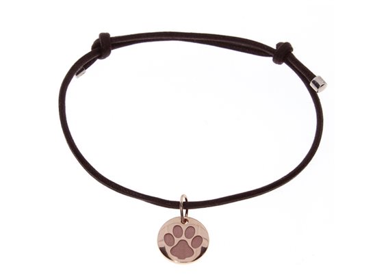 Bracciale con cordino e chiusure in argento. Medaglietta in oro rosa 9kt con diamante (0.004ct colore GH).