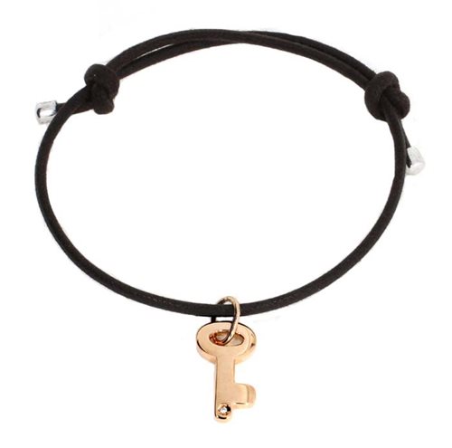 Morbidi e giovanili, i bracciali in pelle Damiani My First sono ideali sia per la donna che per l'uomo, un gioiello accessorio che non passa mai di moda, vero classico della gioielleria dedicata ai più giovani. I bracciali Damiani My First sono perfetti anche come regali, per le più belle occasioni della vita, per esprimere l'amore, l'amicizia o l'affetto con un gioiello originale e prezioso nella sua modernità. I charm sono combinabili a piacimento, potete scegliere una lettera per ricordare una persona, il ferro di cavallo come portafortuna o il lucchetto, come simbolo dell'amore eterno. Bracciale Damiani collezione My First con pendente a forma di chiave realizzato in oro rosa 9kt. e impreziosito da un diamantino naturale bianco incastonato. Il bracciale è realizzato con cordino marrone pratico e resistente rifinito con due dadini in argento 925