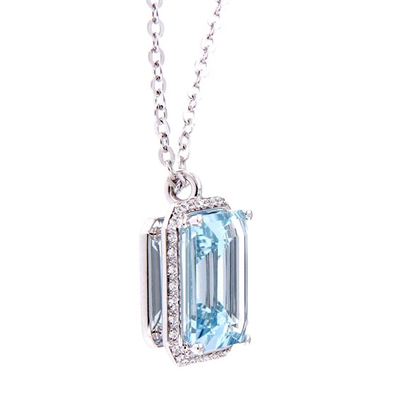 Collierino con diamanti ed acquamarina taglio smeraldo. Diamanti caratura totale 0,107 colore GH