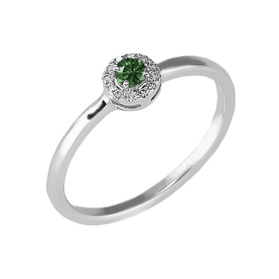 Anello in oro bianco 18 KT peso complessivo circa 1.95 gr con smeraldo naturale a taglio rotondo da 0.09 ct e 12 diamanti bianchi qualità G-Si da 0.0045 ct per una caratura totale di 0.05 ct