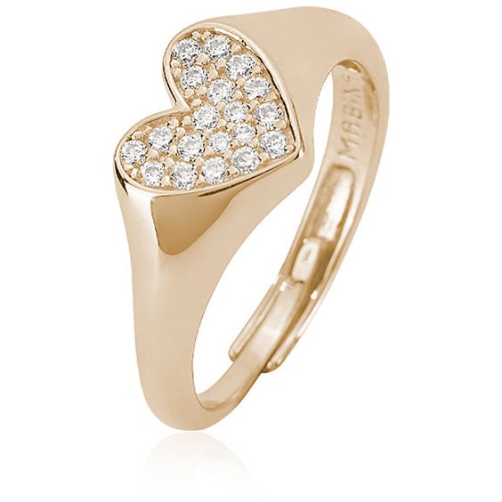 Anello in argento 925/°°° dorato cuore 8.50x8 mm con zirconi bianchi Ø 1.25 mm, misura regolabile da 11 a 19