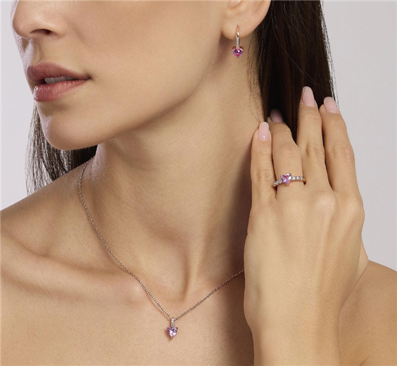 Anello regolabile da donna in argento placcato oro rosa 18K con tormalina sintetica taglio cuore e zirconi bianchi • Incastonatura delle pietre a griffe • Dimensionitormalina sintetica: 6 x 6 mm • Diametro degli zirconi: 2,25 mm • Misura regolabile dalla taglia 11 alla 19 • Materiale: Argento 925,tormalina sintetica, Zircone • Finitura: Placcatura in oro rosa 18k