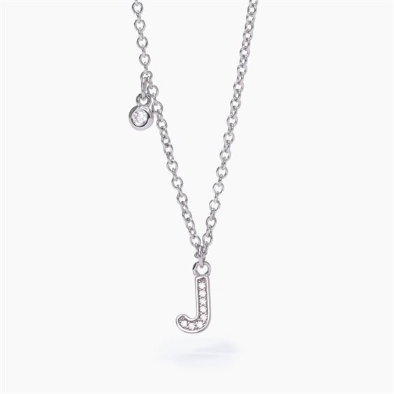 Collana Mabina in argento 925 Pendente con lettera J con pavè in zirconi