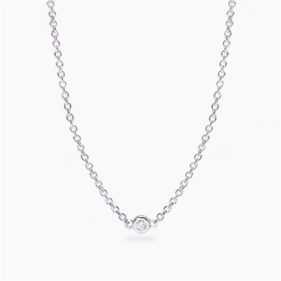 Girocollo in argento 925/°°° rodiato con catena rolò 1.3 mm e diamante lab-grown 0.03 ct Ø 1.8 mm, lunghezza regolabile da 39 a 43 cm