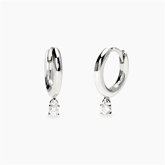 Orecchini in argento 925/°°° rodiato con cerchio Ø esterno 11.6 mm e pendenti con diamanti lab-grown 0.03 ct Ø 2 mm/pz, lunghezza totale orecchino 1.5 cm