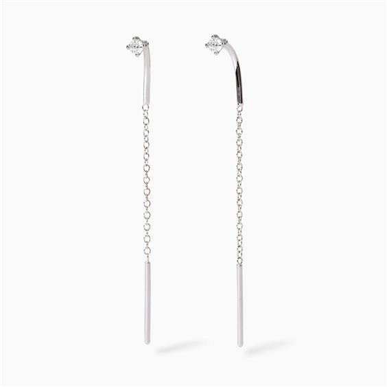 Orecchini in argento 925/°°° rodiato con catena rolò 1 mm e diamanti lab-grown 0.03 ct Ø 2 mm/pz, lunghezza totale orecchino 5.3 cm