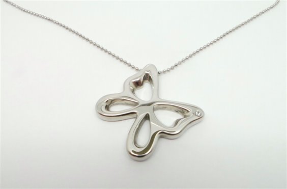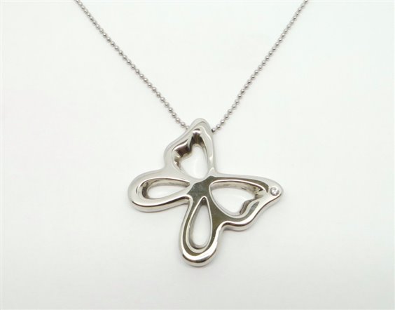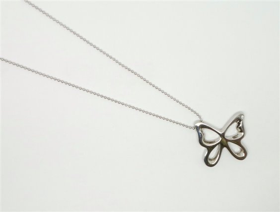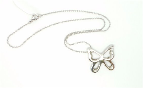 COLLANA IN ACCIAIO ANALLERGICO CON CATENINA A LAVORAZIONE PALLINA CON PENDENTE A FORMA DI FARFALLA ,LUCIDA E CON SPESSORE DI MM 4.2.