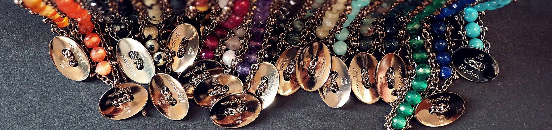 I gioielli Mychau sono composti da pietre naturali e da una chiusura in argento 925, aggiunta quando le composizioni arrivano in Italia.
