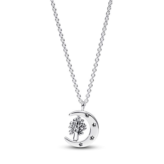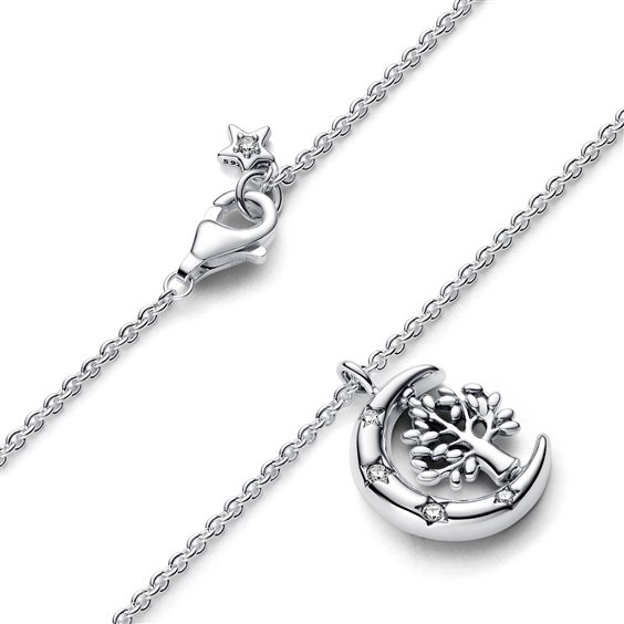 Collana Luna e Albero della Famiglia Argento Sterling 925; 5 zirconia cubica incolore, taglio brillante rotondo