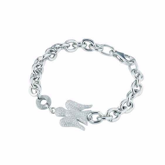 Bracciale in argento con catena rolò e angelo tempestato di Swarovski° bianchi. Si può agganciare su tutta la catena a piacere.