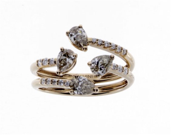 Anello della collezione Arpa in oro rosa con diamanti brown con taglio a goccia di caratura 0,82 e diamanti bianchi a taglio rotondo di caratura 0,14.