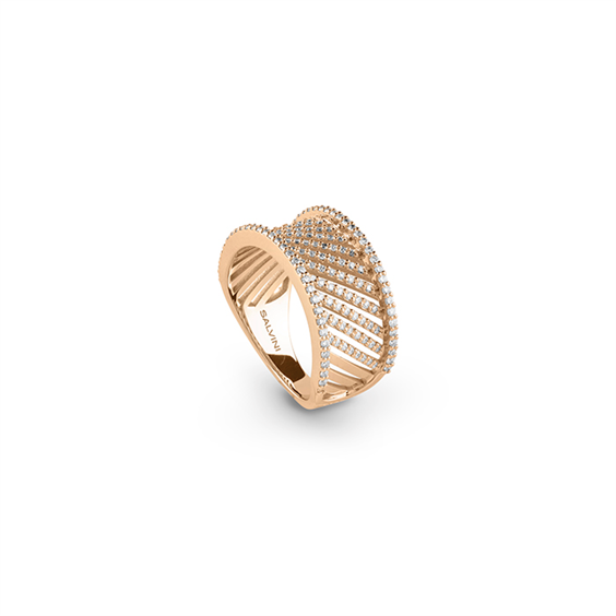 Anello 10mm della collezione Riflessi in oro rosa con diamanti a taglio rotondo di caratura 0,6 di colore GH.