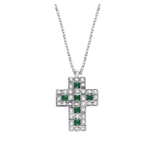 Collana in oro bianco con smeraldi (0.18ct) e diamanti (0.13ct colore GH).