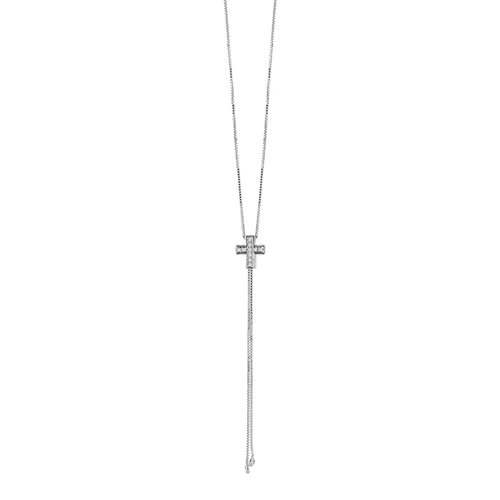 CIONDOLO CROCE SALISCENDI DI SALVINI REF 20071362 Il ciondolo e' regolabile in quanto scorre all'inetrno della catena Catena in oro bianco 750/000 di gr 5,90 La catena e' fornita di chiusura tradizionale e misura cm 60 regolabile in altezza all'estremita' di ogni catena e' incassato un diamante Diamanti taglio brillante di forma rotonda del peso totale di ct 0,08 Colore: G Purezza VVSI Ia croce misura base mm 10,22, altezza mm 11,50 spessore mm 3,25