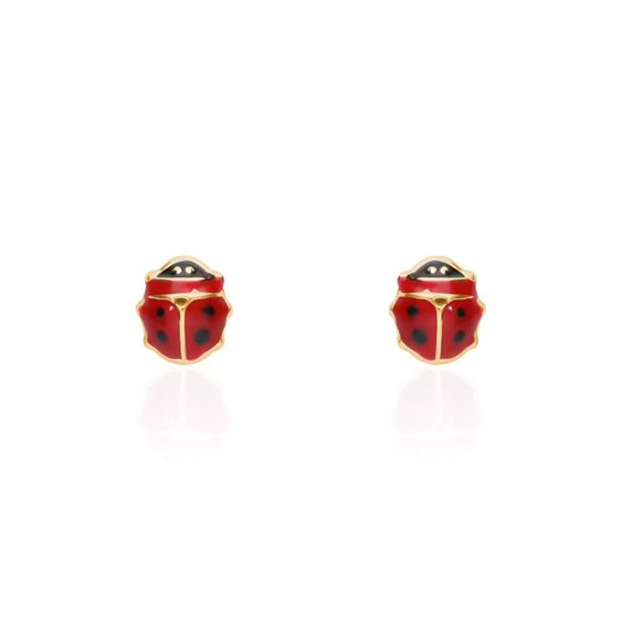 Orecchini a coccinella in oro giallo e smalto rosso.