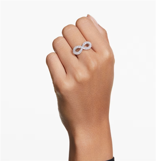 Uno stile intramontabile prende vita in questo anello a forma di infinito. Il gioiello placcato rodio presenta un design a spirale, brillantemente impreziosito da una serie di Swarovski Zirconia trasparenti, incastonati con grande perizia per creare incredibili dettagli. Un anello affascinante ed ipnotico, al contempo simbolico e splendido. Articolo nr.: 5679696 Collezione: Hyperbola Materiale: Placcatura rodio, Zirconia Colore: Bianco