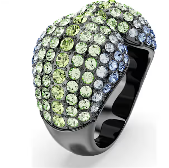Abbraccia l’audace brillantezza di questo anello cocktail ispirato al mare. Il design in pavé unico è placcato rutenio e presenta una base in metallo bombata per aumentarne il volume, mentre il motivo Meteora, composto da cristalli di diverse misure, risplende con un affascinante effetto. Abbinalo a un pendente Sublima coordinato, per un look che ricorda le onde del mare. Articolo nr.: 5700928 Collezione: Sublima Materiale: Cristalli, Placcato rutenio Colore: Multicolore