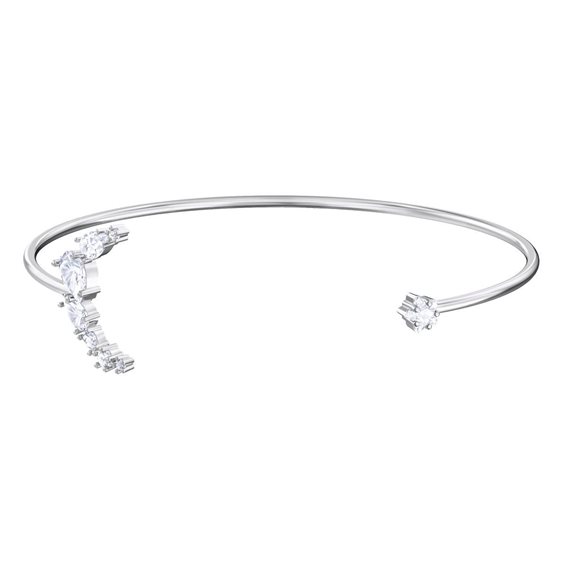 La squisita collaborazione MoonSun tra Atelier Swarovski e l’attrice di fama internazionale Penélope Cruz si rinnova per un’altra scintillante stagione. Celebrando la magia del cielo notturno, questo elegante e sofisticato bracciale rigido rodiato presenta una splendida luna e una delicata stella, decorate con stupefacenti pietre Clear Crystal