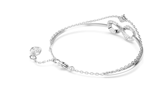 Infuso di un delicato tocco di bellezza e simbolismo, questo bangle Hyperbola può essere indossato più e più volte. Il design placcato rodio presenta una fascia rigida con motivo a simbolo dell’infinito, impreziosito da Swarovski Zirconia trasparenti. Vi è stata inoltre aggiunta una seconda catenina, con un singolo Swarovski Zirconia rotondo incastonato al centro. Uno straordinario bangle a doppio giro che ti accompagnerà con disinvoltura dalla mattina alla sera. Immagini a scopo illustrativo.