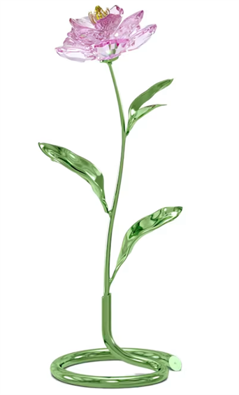 Alta, graziosa e vivace, questa straordinaria peonia fa una brillante figura. La raffinata creazione è realizzata con 456 sfaccettature che catturano ogni raggio di luce e presenta un incantevole effetto sfumato sui petali rosa. Le foglie e lo stelo sono in metallo laccato verde e posizionati su una versatile base in metallo che consente di rimuovere il fiore quando lo si desidera. Simbolo di amore, felicità e romanticismo, questo design a sé stante è un’aggiunta di grande significato a qualsiasi arredo. Non sono necessari vasi né basi per esporlo. Oggetto decorativo. Non è un giocattolo. Non adatto ai bambini di età inferiore a 15 anni. Articolo nr.: 5668065 Dimensione: 18.5 x 6.6 x 7.4 cm Designer: Michele Blasilli Materiale: Cristalli, Metallo laccato Colore: Rosa Collezione: Florere