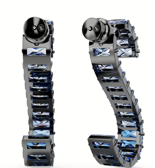 Orecchini da donna di Swarovski della collezione matrix. Orecchini Placcato rutenio con cristalli Swarovski taglio baguette. Dimensione: 3.5 x 0.7 cm. Colorazione del cristallo blu. Chiusura farfallina. La referenza è 5705780