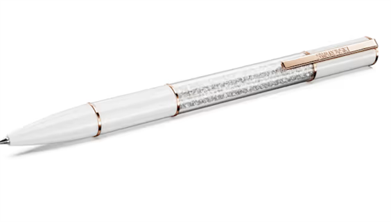 La penna a sfera Crystalline Lustre combina creatività e lusso. Questo distintivo strumento per la scrittura presenta un fusto rotondo bianco e dettagli placcati color oro rosa che includono una pratica clip con inciso il nome Swarovski. Al suo centro, questo accattivante design è illuminato da circa 480 luccicanti cristalli, ciascuno meticolosamente aggiunto utilizzando l’iconica tecnica Crystalline. Una straordinaria aggiunta alla tua scrivania o una notevole idea regalo per gli scrittori della tua vita. I refill di inchiostro nero e blu sono disponibili per l’acquisto negli Swarovski store. Articolo nr.: 5694174 Collezione: Crystalline Lustre Dimensione: 14.4 x 1.1 cm Materiale: Cristalli, Laccato bianco, Placcato color oro rosa Colore: Bianco Colore dell’inchiostro: Nero