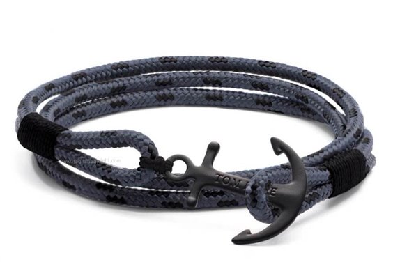 Bracciale unisex tom hope, tm0150, collezione eclipse, novità, in corda e cordino intrecciato cerato resistente all'usura, linea di ritaglio in poliestere da 3 millimetri, stabilizzato ai raggi uv, puro argento sterling con rivestimento nero carbone, resistente quando esposto alle intemperie, senza da nichel e piombo. misura:15-16, 5 cm