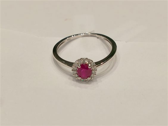 Anello Oro Bianco 750 (18 carati.) Pietra Principale Rubino 0,45 ct. Diamanti 0,10 ct