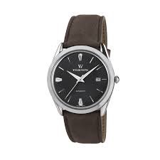 Orologio con cassa in acciaio lucido, diametro 39mm, water resistant 3 atm. Vetro in esalite antigraffio bombato. Corona in acciaio con logo. Fondo in acciaio. Movimento meccanico automatico, solo tempo con datario a ore 3. Quadrante nero con motivo a onde e indici applicati. Cinturino in pelle marrone 'made in Italy'. Fibbia ad ardiglione in acciaio con logo.